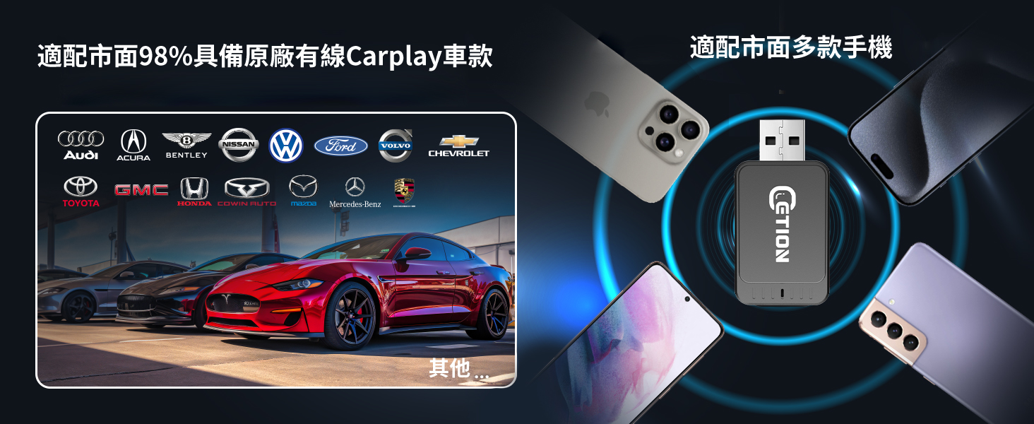 2026 一鍵切換新款【ETION Smart Link】Carplay 有線轉無線二合一接收器